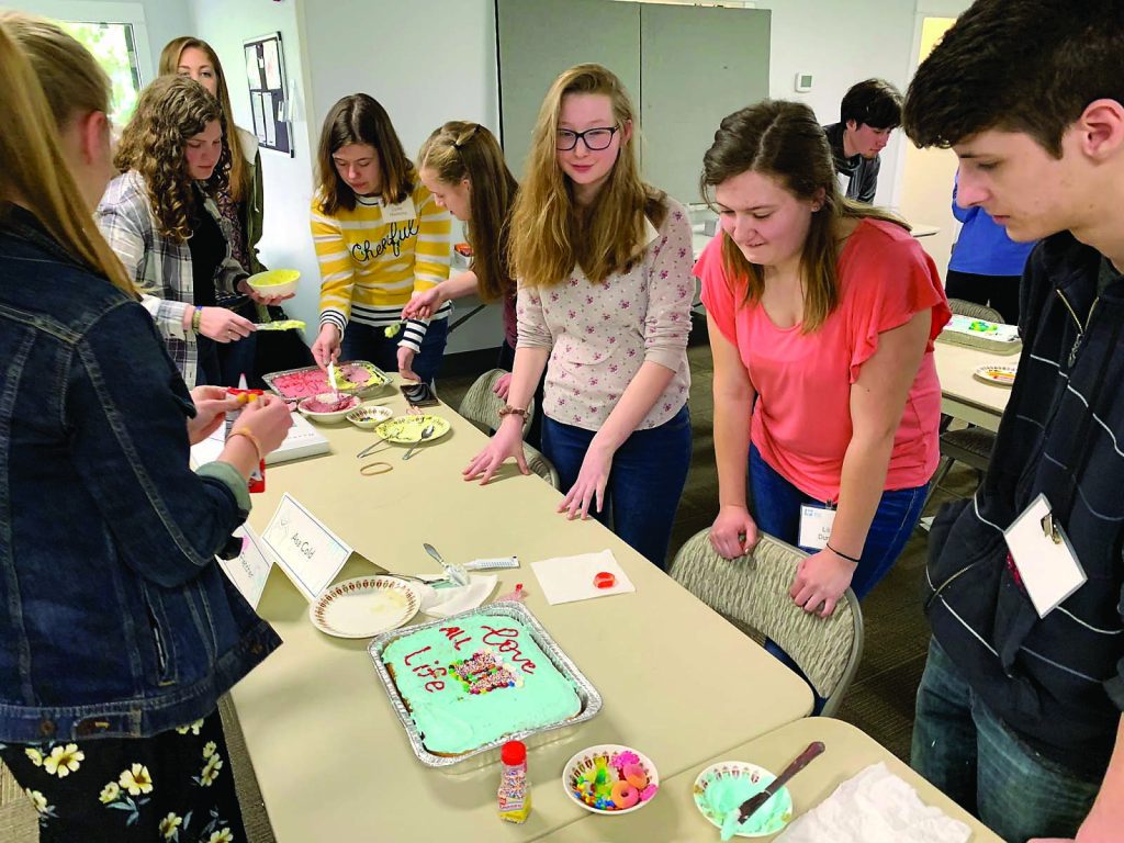 2019 Launch students worked in teams to decorate a cake displaying a pro-life theme. Launch is a student leadership retreat typically held during spring break. Students ages 16 to 21 engage in four days of intense pro-life education and training. These young adults come from a variety of backgrounds, yet all share one thing: a passion for life. While most Launch days involve intense sessions about everything from embryology to apologetics, fun activities are scattered throughout the retreat to encourage teamwork and camaraderie. The cake-decorating contest is typically held the first night for students to become familiar with each other.